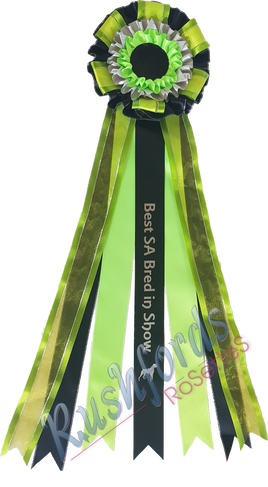 Specials such as in the display picture can also be added to give the rosette a personalized touch at an extra cost.