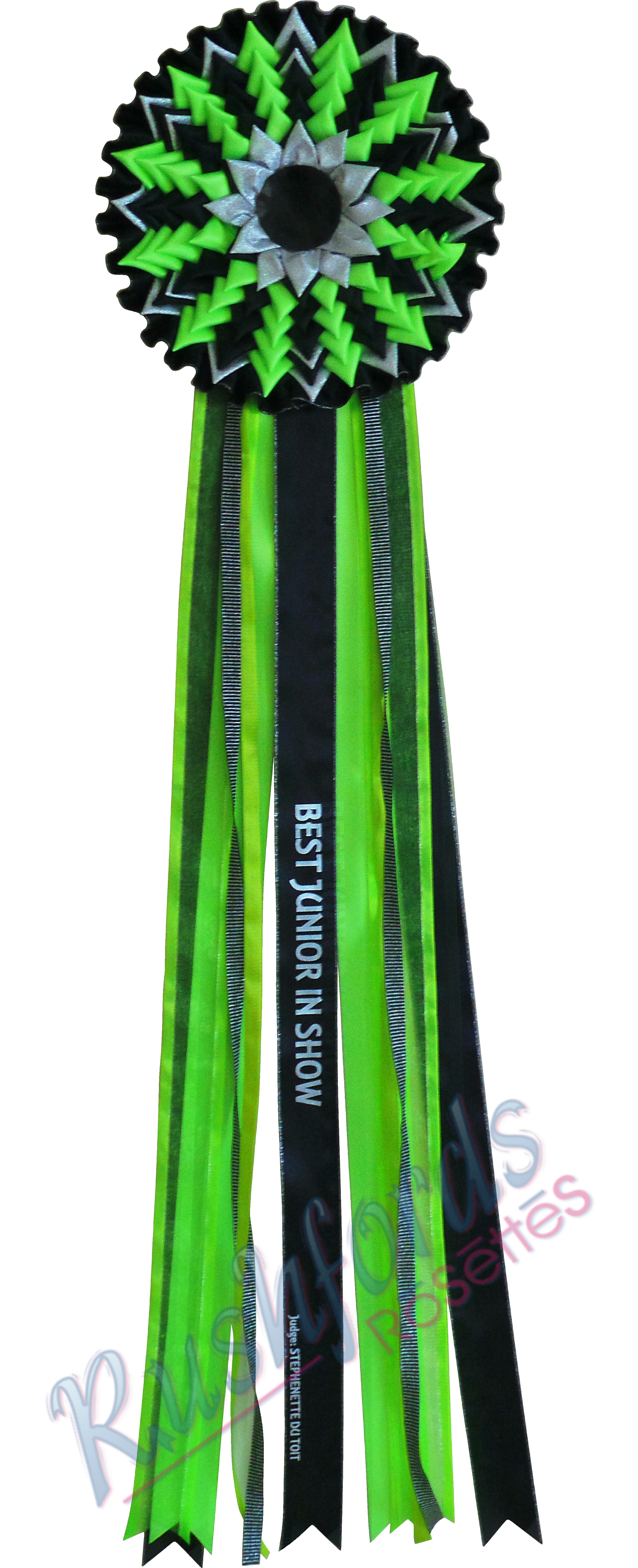 Specials such as in the display picture can also be added to give the rosette a personalized touch at an extra cost.