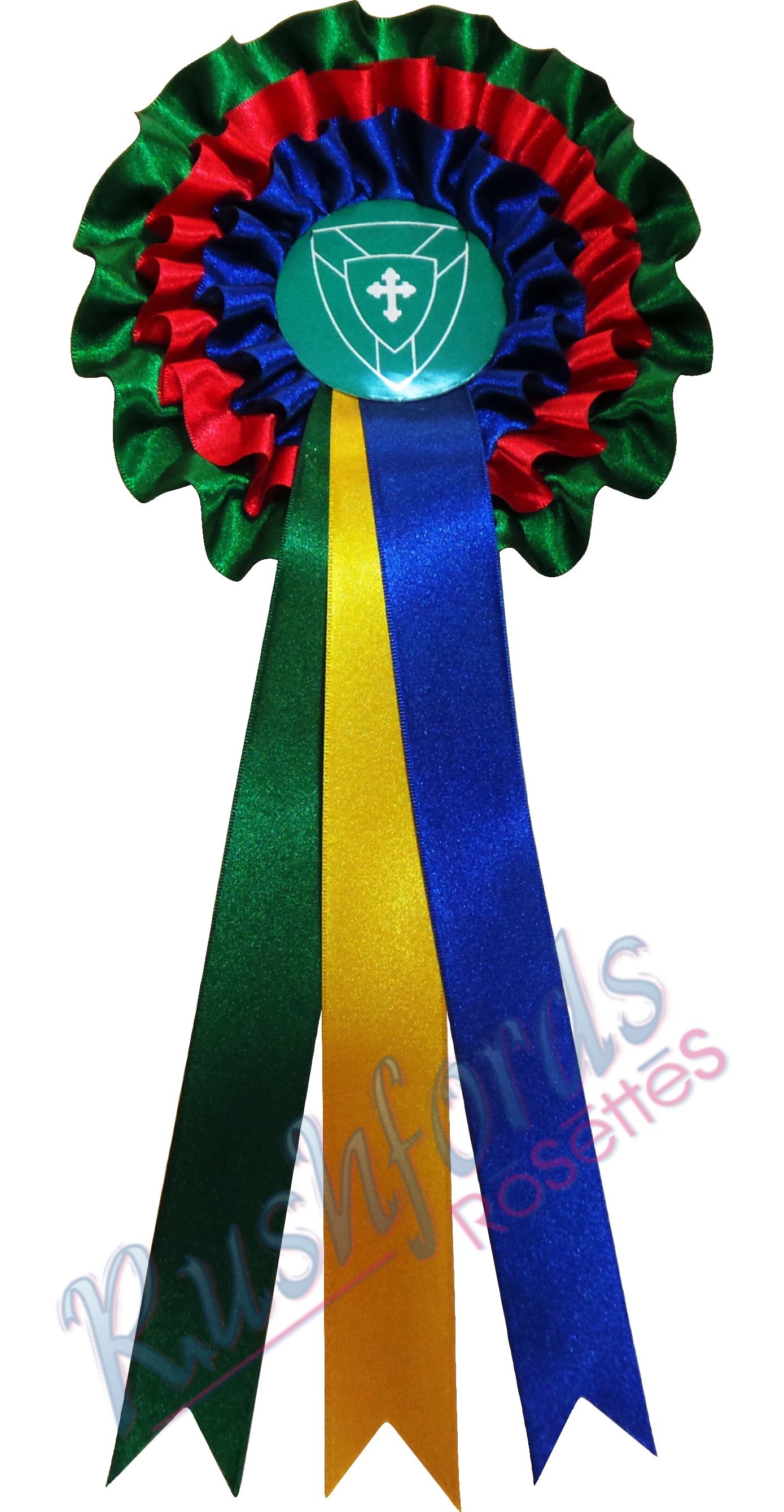 All our rosettes are man-made using top quality 100% satin Ribbons and are available in our entire range of ribbon colours, widths and combinations to ensure that your specific rosette desires can be fully satisfied. Colours shown are for guidance purposes only, we are happy to arrange for samples on request.